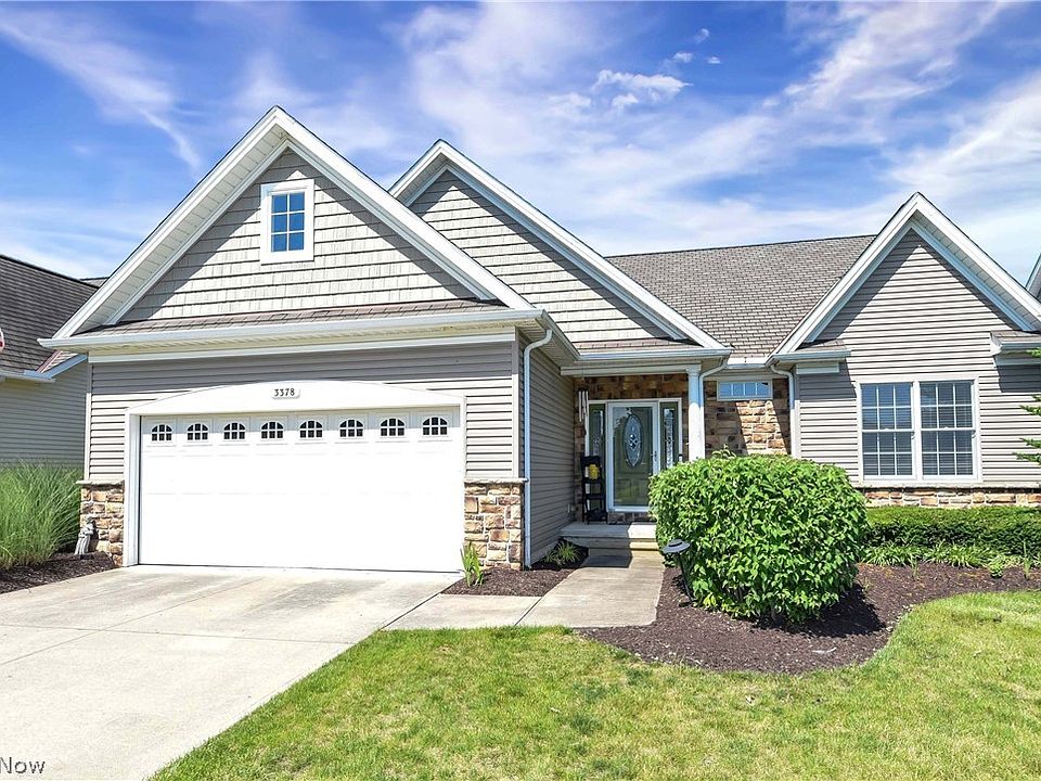 HOLY S**T! You can experience low maintenance living, while enjoying all these updates and this prime location in Avon for under 500k?! Don't miss this move in ready ranch that welcomes you with a bright and elegant foyer! Fall in love with this amazing open concept, from the spacious dining room with trey ceilings, to the large living space that features vaulted ceilings and a cozy gas fireplace! Like to entertain? This kitchen boasts an extended granite island for your guests, and an eat in kitchen area that walks out to a stamped concrete patio perfect for your peaceful night relaxation! Updated cabinets & beautiful tile flooring in this gorgeous kitchen! Mian floor laundry compliments this main level* Follow down the hall to guest room with high ceilings and great closest space and their own updated full bath! Continue into the primary suite that features high ceilings, two great sized closets, and a full bath with double vanities, and wonderful shower / tub combo! BUT WAIT THERES MORE! The lower level is finished and has so much potential for all your entertainment including a third bedroom with egress window, and third full bath! Being minutes from I-90, Avon commons, and more... this won't last!