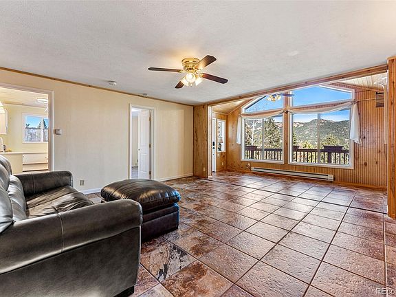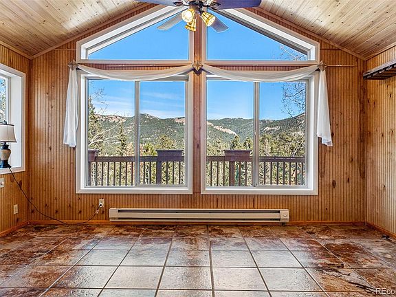Get ready to fall in love with this wonderfully private, single level mountain home nestled among the Pines and Aspens. This charming home offers an amazing deck, allowing for INCREDIBLE views of Staunton State Park and the surrounding mountains. The living room, featuring a gas stove, opening into the dining area with vaulted ceiling and large windows welcoming sunshine all year round. The kitchen has granite counter tops, tiled back splash and stainless steel appliances. The primary suite includes large sliding glass doors, double closets and a bright, sunny master bath. The guest bath includes a claw-foot tub and plenty of space. The bonus room off the living room could easily be used as a home office or small home gym. The sun room can be used as a cozy reading area, or home office where you can enjoy those amazing views. Newer 2-car garage with two fully finished studios / workshops which can also be used as office or home gym space, and includes 220V. Fully enclosed fenced area off the back deck for your pups. Staunton State Park is just minutes away for great hiking. County maintained road, and recently graded separate driveway to allow easy access to the additional workshop/storage shed. Close access to Hwy 285 for easy commute. You don't want to miss this gem! Septic system is rated for 3 bedroom/6 people and is a vault system. The home is on city, gas and electric and has high speed internet where both sellers were able to work from home. The home's water is supplied from a private well. A new roof is scheduled to be installed the week of 11/20, but the exact date is weather dependent.
