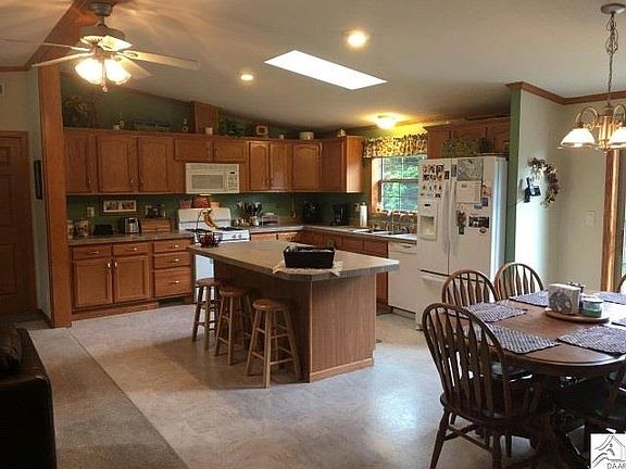 Home on 20 acres with 2 Very large Pole Buildings: 32 x 36 Heated (both in floor & overhead) with 3/4 bath and 220, & the other is a 36 x 60 cold storage with a slab and electricity. House has been completely updated with drywall! Master Bedroom has large walk in closed and beautiful bathroom. Central Air is a luxury in the home and the land has 2 ponds for your outdoor enjoyment.