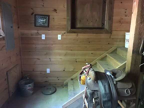 Room to build your dream home! Beautiful 12 acres with stocked spring fed pond. Has a coach house with 3 car garage and workshop area with basement that has garage entry under garage space 4 stall barn with wash rack , tack room and hay loft All buildings have many upgrades . Granite counter tops, custom cherry cabinets: Have utilities in place. Live in coach house while building that dream home.