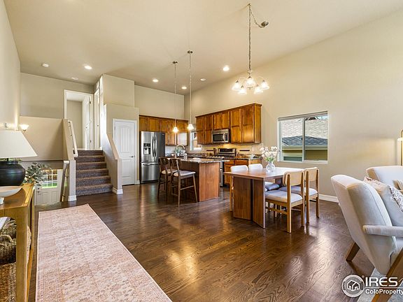 NEW PRICE!!! Incredible opportunity to live in this beautifully maintained residence boasting 4 bedrooms, 3 full bathrooms, 3-car garage and multiple living spaces. Impeccably maintained, this home offers the perfect blend of comfort and convenience; tucked back in a quiet neighborhood but centrally located to I-25 offering easy access to neighboring cities. Entertain easily on the main level area with the open concept living room that is adjacent to the kitchen and dining room. Upstairs you will find 3 bedrooms including the large primary suite complete with custom walk-in closet, and its own private bathroom with large shower and double sinks. The lower level offers an additional 4th bedroom, full private bathroom, large laundry room with built-in cabinets for extra storage and a large rec room. Step outside and enjoy the large covered back patio offering tons of opportunity for multiple living spaces, professionally landscaped backyard and outdoor shed for extra storage. All appliances stay including the clothes washer and dryer and the home has a built-in radon system. This home offers lots of opportunities for large families or multi-generational families to all have their own space. Walking distance to the Clubhouse and Pool, close to shopping and parks- come check it out! Comes with a one year Blue Ribbon home warranty!
