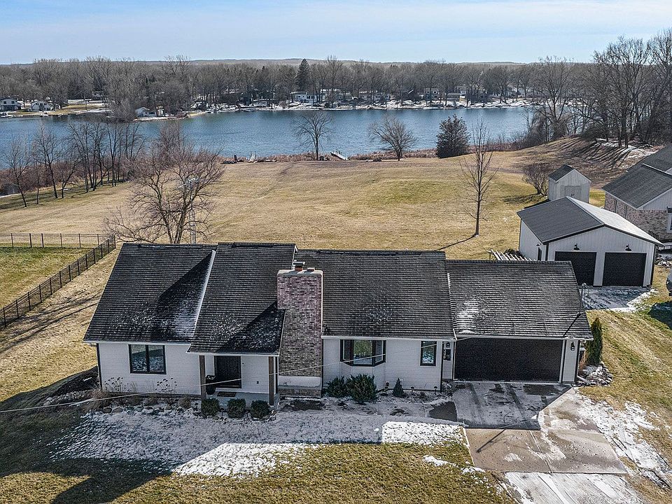 Waterfront ranch on almost 5 acres! This 3 bedroom, 2 full bath home with almost 2400 square feet including the finished, walkout basement has lots of updates and 126 feet of frontage on all-sports Crane Lake. Spacious open concept main living area with gorgeous lake views, vaulted ceilings, & updated flooring. Kitchen is a dream with glowing white quartz countertops & stainless steel appliances. An island adds extra seating and storage. Finished walkout basement with large family room is perfect for entertaining, and includes a full bath & bedroom. Outside, enjoy decks overlooking the lake, a huge yard with apple orchard, and store toys or just hang out in the new 24x32 pole barn (2021). Updates include siding, kitchen, flooring.