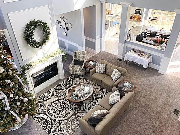 This home is straight out of a magazine! Custom kitchen with tons of cabinets, back splash, granite, built in banquette, 20ft soaring ceilings in living room with double sided fireplace, massive windows throughout, dream master suite, coffer ceilings, 2 bonus spaces 40x60 metal building and so much more!