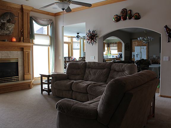 check out this beautiful custom built home, 3 BR, 3 BA, 4th non-conforming in finished walkout basement. Brand new vinyl siding, 2 fireplaces, whirlpool tub, main floor office, built in desks, awesome view, great schools, bus picks up at the door! Underground sprinkler, 15x36 metal building with overhead door.