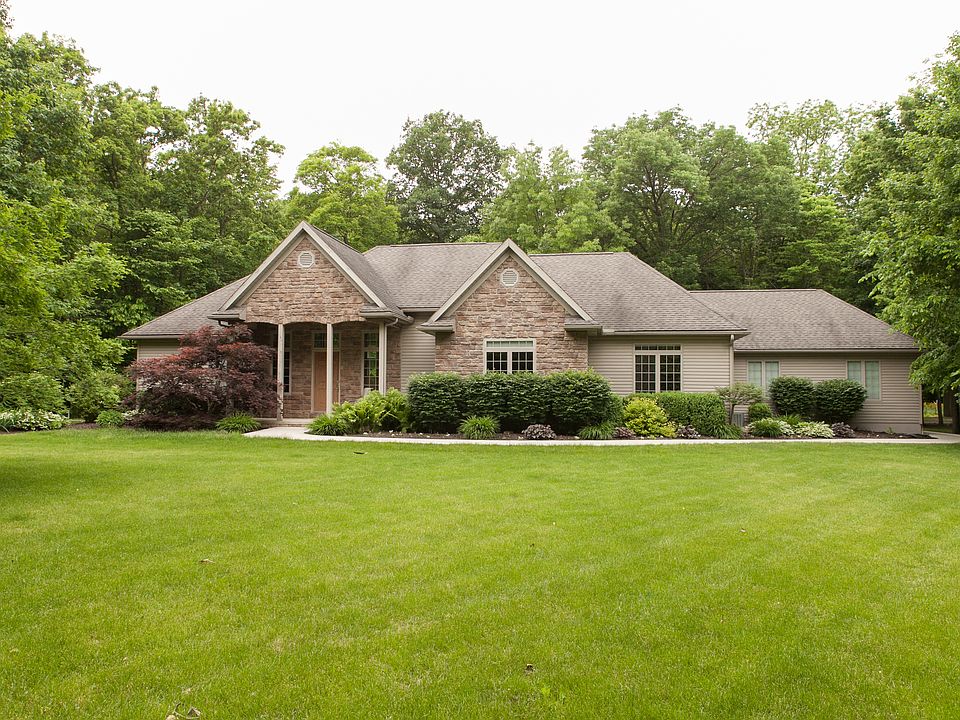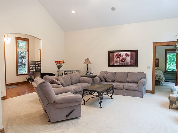 Newer ranch on 10 beautiful wooded acres Hickory cabinets, bullnose drywall corners, arched doorways & great storage. Kitchen has two pantries and room to expand plus separate dining area. Split bedroom floor plan. Master suite boasts a window seat, shower and walk-in closet. Living room with great nature views. Barn and second outbuilding provide space for equipment, animals and more