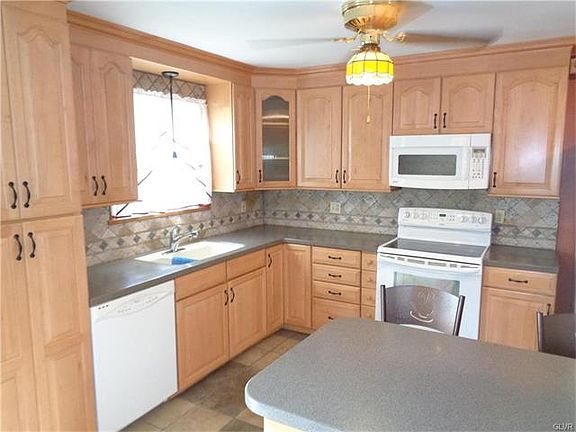 Well maintained, semi-detached, 3 bedroom, 1.5 bath home . You will love the remolded kitchen with its Corian counter tops, tiled floor and tiled back splash. There is additional counter space and seating around the breakfast peninsula. The heat pump, heats the home with forced warm air and the central air keeps you cool in the summer. The roof and siding are less then a year old and the windows have been replaced. The sliding door to the back yard is a Pella. The basement is finished and has a family room and small bar; all you need is new carpeting. There is also an outside entrance from basement. The back yard is fenced with Gazebo and shed. There is off street parking for up to 3 cars. Hardwood floors accent 2 of the bedrooms and is under all of the carpeting. All appliances remain. Come see it today.