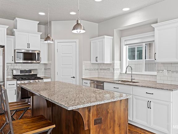 Exquisite 3-Bedroom Home with Stunning Upgrades. Step into luxury with this beautifully appointed 3-bed, 2-bath home that boasts numerous upgrades and modern features. Located in a serene neighborhood this home offers the perfect blend of comfort and elegance. Enjoy a chef's paradise with granite counters, stainless steel appliances and a large island perfect for meal prep and gatherings. Cozy up in the living room with a floor-to-ceiling rock fireplace, creating a warm and inviting ambiance. Unwind in the master bathroom featuring a walk-in shower, separate soaking tub, dual vanities and a spacious walk-in closet. Bask in stunning mountain views from the bonus room equipped with a dual-zone HVAC system for optimal comfort. Experience the elegance of upgraded lighting fixtures throughout the home. Relax on the covered patio, perfect for outdoor entertaining and enjoy the privacy of a vinyl-fenced yard. Custom top-down/bottom-up blinds that offer both style and functionality. Don't miss this exceptional home!