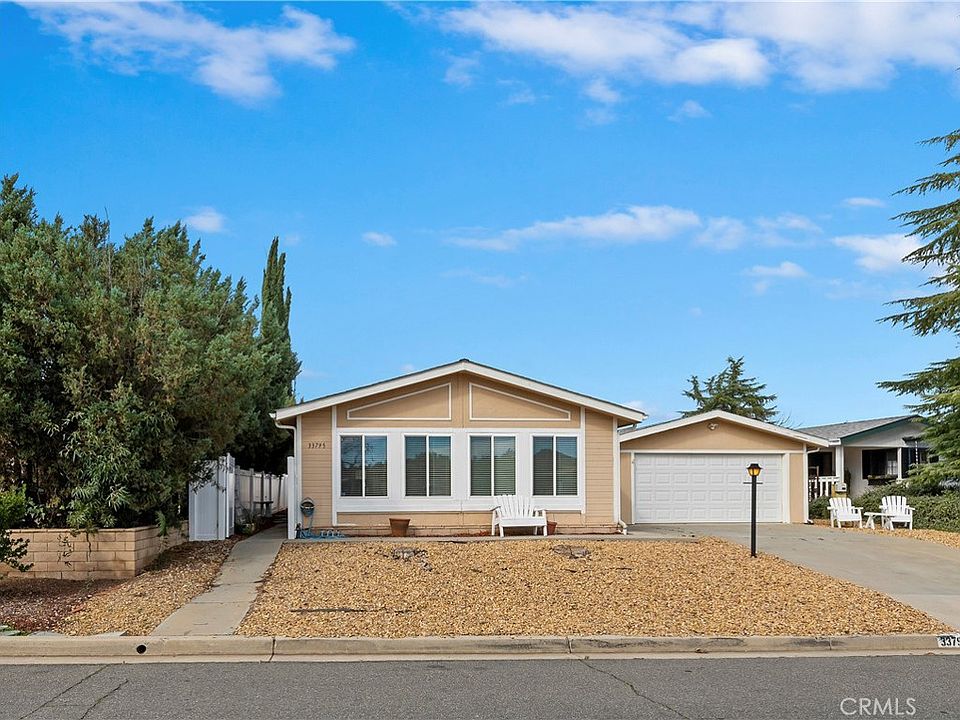 Welcome to 33795 Plowshare Road, a charming residence nestled in the heart of Wildomar, CA. This delightful single-family home offers a perfect blend of comfort and style, providing an ideal backdrop for modern living. The inviting entryway leads you into a thoughtfully designed interior featuring 2 bedrooms and 2 full bathrooms. The open floor plan seamlessly connects the living, dining, and kitchen spaces, creating an ideal setting for both casual family time and entertaining guests. This cute home sits on a lot with a large backyard with a gate that conveniently opens to the orange orchard and hiking trails. The windows replaced with new sun resistant vinyl windows, New jacks were installed underneath, the water heater, air conditioner, heater and garbage disposal were replaced, newer garage door, newer Roof, all update/upgrades done the last 5years.