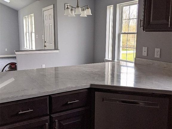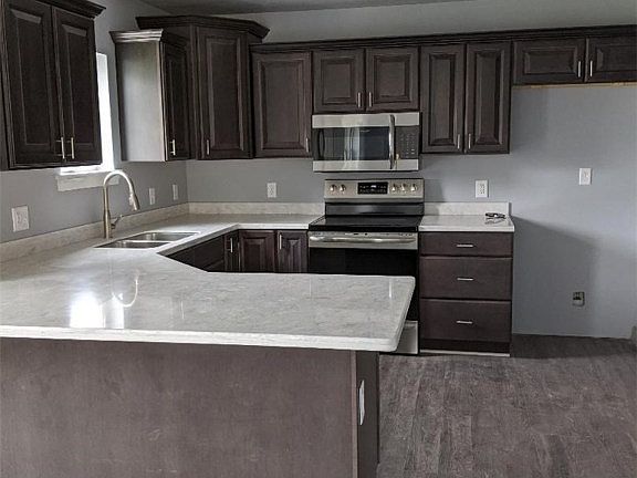 Beautifully appointed, NEW construction model patio home. Dramatic dark gray cabinetry in the kitchen and baths. Sunning! The kitchen counter is solid surface, baths feature cultured marble counters. Hard surface flooring is wood laminate. Striking white trim throughout, 3" header over doorways, 4 1/2" base board. Open site line from kitchen/dining area to the family room. The family room features a vaulted ceiling, palladium window and skylights. Large owners suite with walk-in closet and full bath w/double bowl sink and walk-in shower. Main bath offers a tub/shower combo, linen closet off the bath. Oversized 2-car garage gives additional space for storage. Laundry off the kitchen/garage includes pull down attic stairs for more storage.