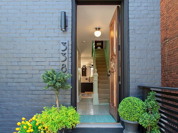 An extraordinary remodel designed by Pygmalion Home! As you enter though its 8' tall custom door, you're greeted by a welcoming entry with arabesque-tiled floor. It features well-preserved woodwork and an original staircase that comes with a custom sisal stair runner + chrome rods. Feel the dramatic elegance as your enter the living room with the coffered ceiling, limewashed decorative fireplace and whitewashed oak flooring. Flowing through, the open kitchen/dining area is complete with a waterfall carrara marble island, fully equipped with a Verona gas stove and a Liebherr fridge. Upstairs has 2 bedrooms covered in exposed brick, wood-beam ceilings, wainscoting, premium carpeting and a full bath. The master oasis on the 3rd floor provides an ensuite bath, walk-in closet and 10.5' cathedral ceiling with exposed beams and custom chandelier. Walk out onto the expansive deck to enjoy your backyard getaway. And you'll be relieved to know there are 4 off-street parking spaces. Just steps from bustling Butler St & Children's Hospital.