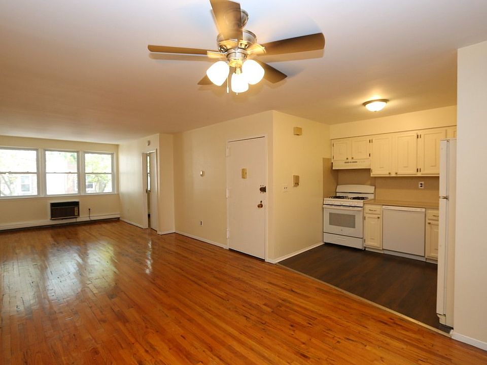 90s spacious 2 bedroom apt. Near shops and train. Bright apartment on the top floor of a 3-family duplex apartment with 3 bedrooms and 1 1/2 bath. Large living room/dining room combo. Hardwood floors throughout. Lots of closet space. Laundry on premises. Utilities not included. Tenant is responsible for all utilities including heat and hot water. Good credit and proof of income required.
