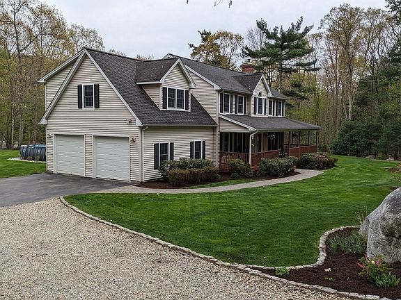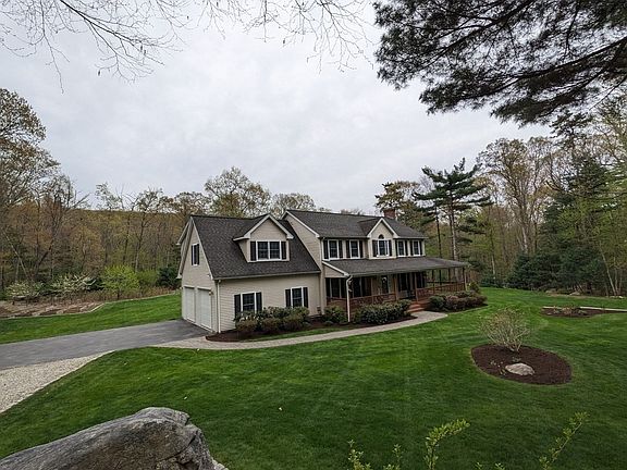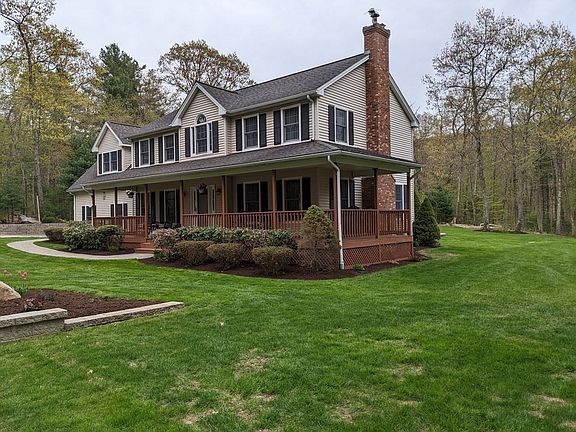 Privacy privacy privacy. Come enjoy the best that Hampden has to offer in this tranquil setting. Craftsmanship abounds both inside and out. Ornate trim work, hardwood doors, Anderson windows, and a wrap-around farmers porch all make this a one-of-a-kind property. A bright Open floor plan features kitchen with granite counter tops etc, carpeted living room with wood burning stove, master bedroom has walk in closet & master bath and other features include multiple heat/cool zones, water filtration system, etc.Take in nature and explore the streams and hills on this forested 9 acre parcel. With an abundance of berries and fruit trees and storage options for all your outdoor toys, there's something for everyone. Cool off on those hot summer days in the above ground pool or entertain a group of friends and gather around the fire on the oversized bluestone patioPerfect mix of form and function in terms of location. 15 minutes from the Mass Pike and 25 minutes to I-91. Hartford/Bradle