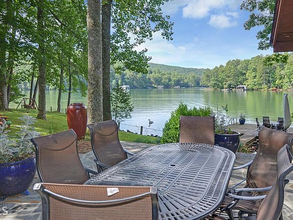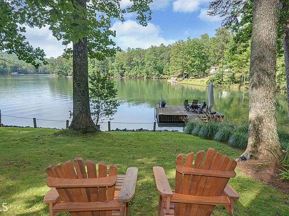 Pure Lake Burton. This 4BR 3BA home is set beautifully just a few short steps from the lake on its 1.81 acre lot with over 400 ft frontage. Located in a fabulous swimming cove it has a two-stall boathouse, stationary swim dock and impeccably landscaped grounds complete with firepit, all working together to create a park-like feel all around. The main level features the master suite, 2 guest rooms, hardwood floors, spacious completely renovated cook's kitchen, lake-view dining area, and sitting room. The lake front great room with vaulted ceiling is flanked on each side by stone patios, and with its wood-stove fireplace provides the central gathering area with fabulous indoor/outdoor entertainment flow. The lake level guest suite has its own private entrance.