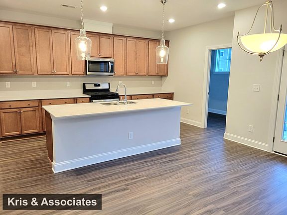 LUXURY 3-story end-unit townhome in the newly built Savaan community. This community is in a great location, with easy access to highways, groceries, restaurants, RDU, RTP and amazing schools (see below). This home is equipped with a two-car garage and large driveway, 4 bedrooms and 3.5 baths. Luxury vinyl plank throughout home, tiled bathrooms and carpeted bedrooms. A one bedroom suite, with a walk-in closet and full bath, and two-car garage are on the first floor. The second floor contains an amazing gourmet kitchen with granite countertops and wooden cabinets, the dining room, a massive living room, planning room, powder room and open deck. Third floor has 2 bedrooms with a Jack and Jill bathroom, the master suite and a study area. This home is equipped with everything you need to entertain and impress guests or to spend a quiet night in. Comes with BRAND NEW stainless steel appliances, washer and dryer, refrigerator, dishwasher, microwave and window blinds. Several community amenities: outdoor pool, pool house, clubhouse, dog park, playground and outdoor fitness walking trails. Carpenter Elementary School Alston Ridge Middle School Green Hope High School Minimum lease term of 1 year. Security deposit required upon lease agreement. Credit score above 650 required. Credit scores below 650 will be considered based on owner approval and a 2 month security deposit.