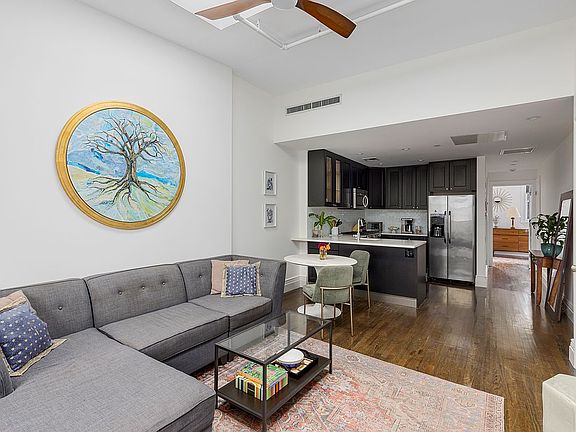 Welcome to 338 Clinton Ave in Brooklyn – a 2-bedroom, 1-bathroom condo nestled within a classic brownstone in the Clinton Hill Historic District. Spanning 870 square feet with a private roof deck, this residence offers a harmonious blend of historic charm and modern conveniences.