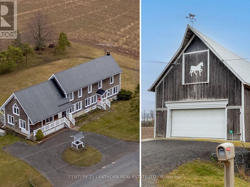 This 4-bed, 2-bath home was originally built by John Baird, sometime around 1847. Now lovingly updated with all your modern-day amenities; a metal roof, geothermal heating system and back-up generator to ensure your utmost comfort. Influenced by loyalist architecture, this 3200+ square foot home has a welcoming kitchen with stone countertops that leads into a large dining and living area bathed in sunlight with southern exposure. Featuring original pine floors and restored wood beams. Attached to the East of the home is a spacious family room boasting a soaring cathedral ceiling and additional loft area connecting to the second floor bedrooms. Across the road, a 1200 square foot, 2-level, plus loft, garage/carriage house provides ample space for extra storage and hobbyists alike. (id:41440)
