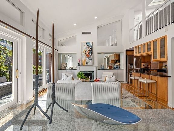 Back Bay. Spectacular + Sophisticated top floor duplex. 2 Parking spaces included. 2 large Private decks, both with incredible skyline views. 2 beds + den + 2 baths. Stunning light + airy home with fabulous lofty floor plan. Sunny South facing open living room with ceilings soaring to 15 feet, refinished hardwood floors ,fireplace + space for formal dining set up. Sleek granite kitchen with breakfast bar, stainless steel appliances, built in microwave + under counter wine fridge. Perched high above living room--on it's own floor-- a fabulous space with 3 skylights, perfect as family room, den or guestroom. 2 bedrooms each w 10 foot ceilings--overlooking the treetops along the Commonwealth Ave Mall. Primary bedroom with large bay window, fireplace, walk in closet + bath w tub. Central AC. In unit laundry. Live in the wonderful Back Bay neighborhood near Newbury St shopping/cafes, Charles River, Commonwealth Ave Mall, Harvard Club & more all outside your front door.