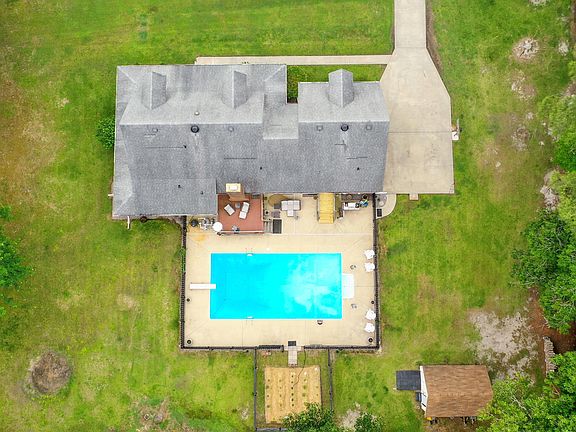 Inside, you'll find oak hardwood floors flowing through the foyer, formal dining room, kitchen, and living room—setting a warm and welcoming tone throughout the home. The kitchen blends charm and functionality with Corian countertops, a beautiful backsplash, gas stove, and a central island perfect for gathering. Just off the kitchen, the breakfast nook overlooks the heated saltwater pool, making it a lovely spot to start your mornings. The living room offers a cozy place to unwind, with a shiplap accent wall and a wood-burning fireplace that bring a touch of farmhouse charm. The primary suite, tucked on the main floor, features two closets, private access to the outdoors, and an updated en-suite bath complete with a walk-in shower and a deep soaking tub—a true retreat after a long day.