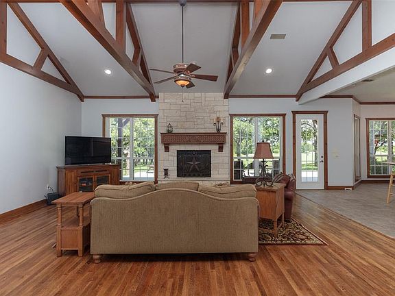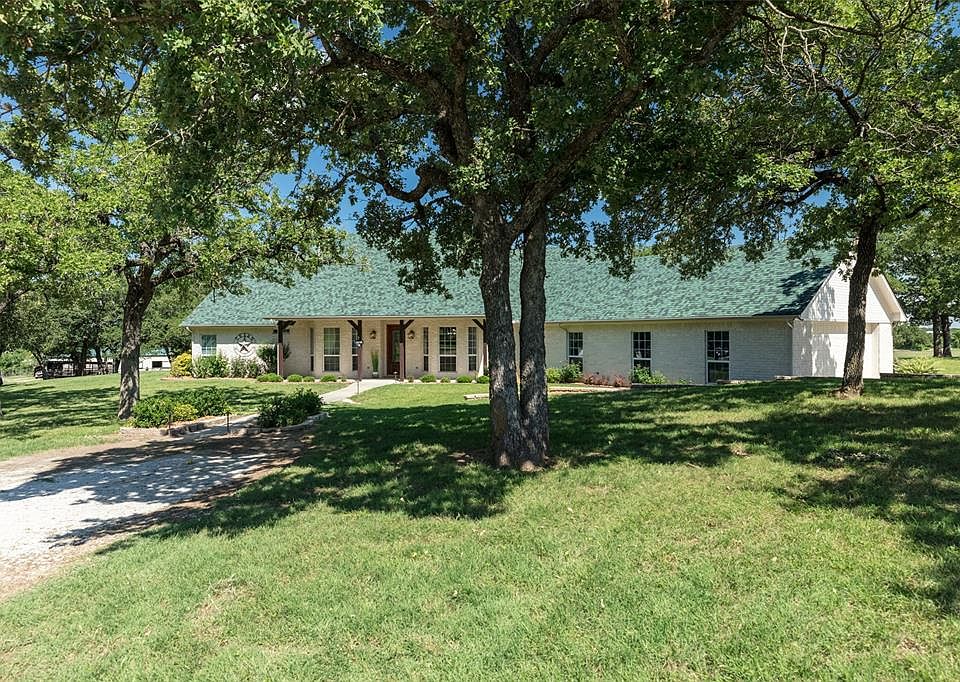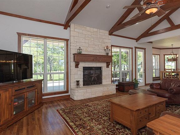 Today is your lucky day for this stunning property is for sale. 15 acres of large oak trees, hay fields, and a pond. House sits up on a hill with a beautiful view of the Texas landscape. Home interior freshly painted May 2020, wood floors, cathedral beamed ceiling, rock fireplace are all but a few of the extras. Kitchen is a cooks dream, featuring large island, custom cabinet, new dishwasher, farm sink, 2 ovens, granite c-tops, large pantry to die for. Game Rm behind kitchen could be 4th bed. Beautiful gracious home with a touch of western Country. Storm shelter off Master Bed. 36 x 48 Horse Barn has 2 stalls and room for 2 more. Riding Arena! More land available if interested.