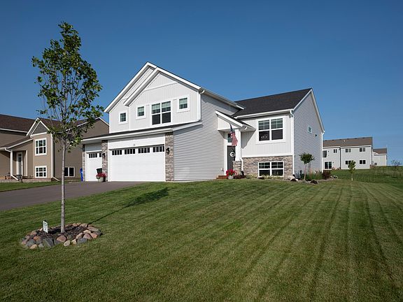 BETTER than NEW! Still in its infancy, you have to see this like new, late 2021 diamond of a home in person to appreciate its ridiculously amazing value! 5 bed/3 bath, 3098 sqft with a private "getaway" style massive owner's suite that has a vaulted ceiling, private bathroom w/double sink vanity, walk-in closet and laundry nearby! Turn-key, spotless. Extensive list of significantly valuable Add-On's & Upgrades after purchase that weren't included in initial build: Huge stunning TREX composite deck, custom window treatments, gutters, washer/dryer & professional landscaping. Recent fresh paint & upgraded flooring in main level living room & hallway/office/lower level hallway to match kitchen/dining flooring (photos depict original flooring & paint colors). Meticulously cared for. Granite. Irrigation system w/professionally sodded lawn. Invisible pet fence line installed. Surrounded by other new homes in the most perfect of locations & wonderful access to town, country or WI-35/64 (MN36).