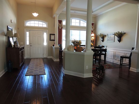One look at the Nantucket floor plan on a pond lot and you will fall in love! This lovely home has hardwoods throughout except the bathrooms and laundry room have ceramic tile and the FROG has carpet. The separate dining room is separated by columns and has wainscoting and a trey ceiling. The great room has a gas log fireplace and is the heart of the home. The gorgeous kitchen has granite countertops, ceramic backsplash, an island, bar area, gas range, huge pantry and 42'' cabinetry. The eat-in area is perfect for breakfast or a light evening meal. The laundry room is conveniently located next to the kitchen. The bright sunroom beckons you to the patio outside and a view of the pond beyond. The yard is fully fenced for the safety of children and pets. The dual masters are an added f