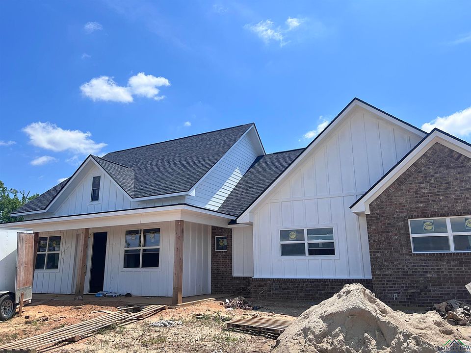 Gorgeous new construction in Deerfield Farms! Come check out this brand new build on 1.466 acres and breathtaking views. This 4/2.5/2 has a Longview address but Hallsville ISD schools. Walk inside to see open concept floor plan with beautiful finishes including granite countertops, wood-look tile flooring, contemporary fixtures and more. Huge lot with stunning views of the lake all from your front porch. Construction set to finish by end of June. Do not miss your chance to make this one yours before it's gone. Call to schedule your private showing today!
