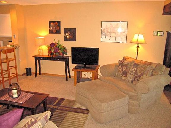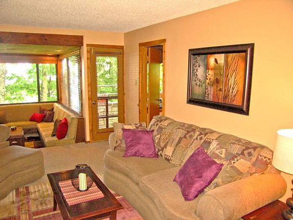 Ski-front 2 bed condo, center of Wintergreen village. Beautifully furnished and updated - turnkey ready for the 2013/2014 winter season. New in 2013: Flooring, stainless steel fridge, paint, AC unit, plantation blinds, light fixtures, accessories. Condo located directly across from Blue Ridge Express chairlift - it's like having your own warming hut on the mountain! Walk to year-round Mountain Village festivals, performing arts, dining & shops.