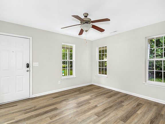 Recently updated ranch on half acre in the heart of Wake Forest is close to shopping, restaurants and is minutes from Joyner Park. Enter through the front door to see the open concept living room, dining room with galley kitchen. Down the hallway features 2 secondary bedrooms and full bath the primary bedroom is located at the back of the home with attached bath. This home has been freshly painted, LVP installed throughout and new kitchen appliances. Enjoy the rocking chair covered front porch and the large backyard perfect for entertaining.