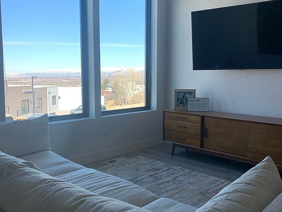 Beautiful modern, industrial 3 bedroom 3.5 bathroom townhome with stunning views! 1 bedroom in the basement, 2 bedrooms on top floor, each bedroom has own ensuite bathroom. Fridge, dishwasher, washer, dryer all new and top quality. Finished backyard with trees and garden area. Kitchen with modern cabinets and dining room accent wall. One of the few units with an open-staircase floor plan and views of the city. Less than 5 minutes from the freeway with many walking trails. $2550 Deposit owner will pay for the $150 HOA No smoking Pets allowed with additional fee $150/month pet fee. No smoking. Utilities covered by tenant. Garbage and HOA covered by landlord. $40 application fee if not applied through Zillow.
