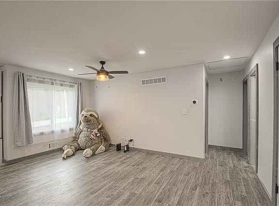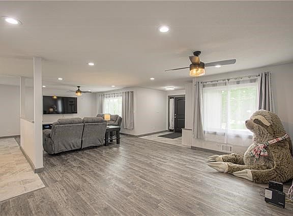 Beautifully renovated home sitting on almost 1.5 acres! Main level has been totally opened up, perfect for entertaining, with an extra large granite kitchen island. New flooring, trim and fixtures add to the modern feel. Enjoy the giant enclosed porch, overlooking your oasis of back yard, filled with mature trees! Enter the downstairs master via a unique "hidden door" which opens into a MASSIVE closet, the size of most secondary bedrooms! The garage has an enlarged 9.5' wide door, which is able to hold your bass boat comfortably. Giant work area in the rear of the garage, or park 4 cars tandem (2 on each side). Perfect for the hobbiest with lots of large tools. Come call this lovely home and peaceful land yours today!
