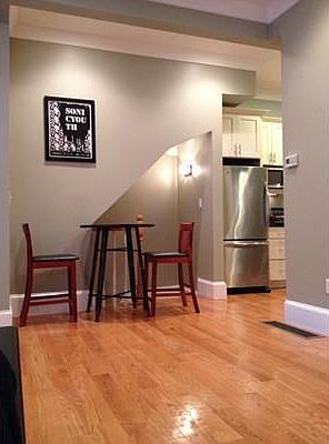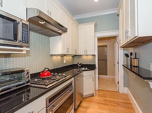 Convenient location in South Boston 2 blocks off West Broadway. This condominium for rent is situated in a well maintained brick rowhouse and was completely renovated within the past few years. High-quality finishes throughout. High ceilings. recessed lighting, crown molding, energy efficient windows, central a/c. Large open concept living room with gas fireplace, dining area, polished hardwood floors; beautiful Kitchen with granite counters, stainless appliances; large tiled Bath features enclosed shower with tiled bench & rain-shower head; tile floor with radiant heating; Bedroom with hardwood floors & ample closets; Special bonus- private deck off of the bedroom! Lower level features large private storage room w/ private washer/dryer.