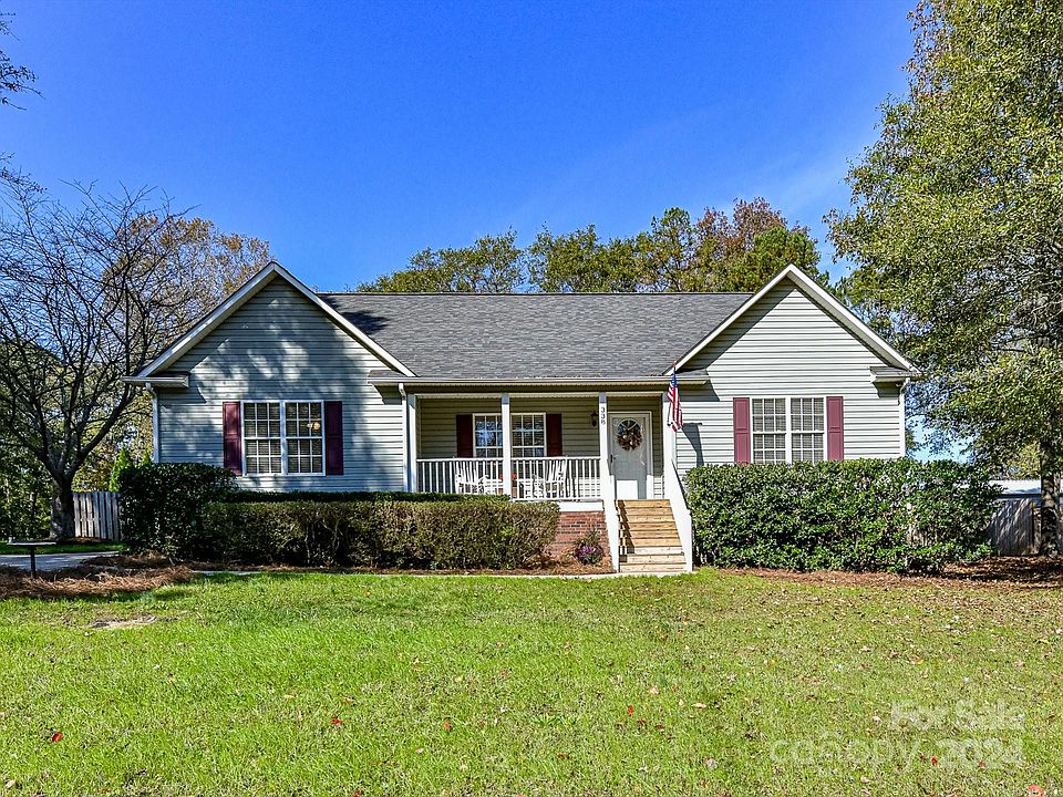 Excellent location! Just outside Rock Hill city limits with lower county taxes and no HOA fees! This charming 3-bed, 2-bath ranch offers privacy and tranquility with a spacious front yard, level fenced-in backyard, and over half an acre. Enjoy the covered front porch with wooded views, rain or shine. The great room features vaulted ceilings, hardwood floors, and a cozy gas fireplace, creating a warm, inviting atmosphere. The eat-in kitchen displays granite countertops, ceramic backsplash, and enhanced lighting for style and functionality. The primary suite includes a cathedral ceiling, ensuite bath with dual vanity, walk-in closet, and a split-bedroom layout for privacy. The home features appealing architecture with elegant archways that enhance its charm and character. Updates in 2024 include roof, HVAC, paint, and carpets. Shed, range oven, and dishwasher convey. Located in Emma Ridge on Hwy 5, minutes from I-77 and downtown Rock Hill. Eligible for USDA financing.