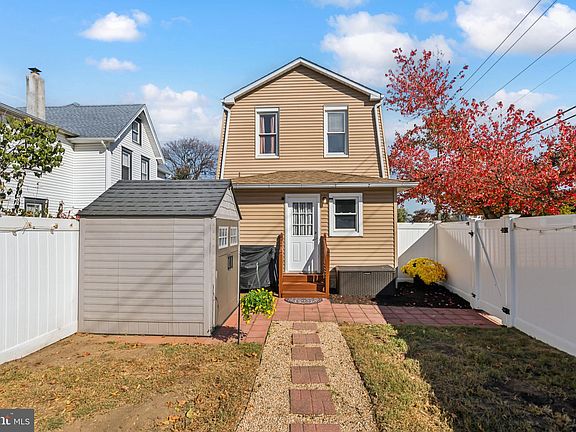 Welcome Home to your Upgraded Sunny home in Riverside! A few of the recent upgrades include newer gas water heater (2020), new sewer line (2017), new shower plumbing (2024), main living areas freshly painted in Sherwin Williams Revere Pewter (2024), Quartz countertops, brand new Frigidaire refrigerator, backsplash and LVP flooring in the kitchen (2021), remodeled full bathroom (2018), cozy fenced in front porch and a fully fenced in backyard (2021). Other updates that have been nicely maintained are replacement windows throughout, roof and ac - all back in 2010! Imagine sipping hot cocoa or your beverage on your fenced in front porch as you greet your new guests. Walk on into the combo living - dining area (currently set up as living rm and home office). There is a newer double coat closet, ceiling fan and crown molding. Most of the replacement windows in the main and upper level have custom vinyl wood faux blinds. Move on to the remodeled kitchen with upgraded quartz countertops, waterproof luxury vinyl plank flooring, newer refrigerator, replacement cabinetry painted in Behr's Naval and wainscoting along the walls. Head back to the laundry - mud room with additional replacement cabinetry for pantry storage - there is plenty of room here to set up a craft room or add a powder room too! Step outside to your backyard with newer 6 ft vinyl fully fenced in yard and a 7 x 7 Rubbermaid shed. Two separate patio areas make grilling and entertaining fun for all. Head back inside and upstairs you will find a beautifully remodeled full hall bathroom with tiled shower (with brand new plumbing), tiled flooring, and newer sink, toilet and medicine cabinet. The three bedrooms are generously sized, each with it's own closet and ceiling lights. The primary bedroom is large enough for a king sized bed and has a ceiling fan light too. There is a newer attic pull down staircase in the upper hall for access. Head all the way down to the unfinished basement with high ceilings that has more than enough space for all your storage needs! Your new home is blocks away from Angelo's Pizza shop plus many other eateries and mom and pop stores in downtown Riverside. Riverside has achieved Blue Ribbon Beacon School status and is a one school system for K-12 so any young ones will stay together with their friends. Easy access to Route 130 for all your commuting needs too! Fall in Love and Make an Offer Today!