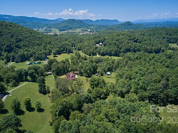 At Breezewood you'll encounter a unique and spacious 5BR/4BA home, well-sited on 20 acres for privacy, views, and gentle breezes. The custom-built home underwent a 1,200 sf addition/remodel in 2020/21, which added an open living room with stone fireplace and cathedral ceilings, a large master bedroom suite with coffered ceiling, and an entirely new gourmet kitchen. Further highlights include first floor master and 2 additional en-suite bedrooms. Upstairs, a large open multi-purpose living area with butler's pantry, 2 bedrooms and full bath. Outside, enjoy entertaining on the flagstone patio, complete with wood burning fireplace. Ample room for gardens and plantings. Wildlife and nature abound. The steady flowing Garren Creek runs through the front portion of the property. For the equestrians, a 5-stall center aisle barn with tack room, and run-in shed; both of which could be repurposed. Property fully fenced with gated entrance. Desirable Fairview location. 15 minutes to Asheville.