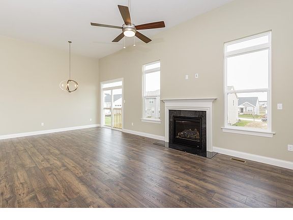 Payne Family Homes popular Geneva II ranch is MOVE IN READY in the rapidly selling Shady Creek neighborhood, an amenity rich community with a resort-like lifestyle. This 3 bedroom, 2 bath ranch offers 1,932 square feet of impressive living space and a dynamic, open floor plan. You will be wowed with 9 and 12 foot ceilings, a gas fireplace, 42 inch white cabinets with crown molding and hardware, Quartz countertops, large island with breakfast bar, stainless steel appliances, pantry, wood laminate flooring throughout the main living areas, Jeld-wen Low E windows, main floor laundry, walk in closet in the Master Bedroom, 2 walk in Master closets, a Sitting Room off of the Master Bedroom, Luxury Master Bathroom, raised height double bowl vanity in the Master Bathroom with wave bowls, separate tub and shower, 50 gallon water heater, custom wall paint, designer lighting, tall foundation pour and more. The exterior is elegant and low maintenance with brick, vinyl siding, a 3 car garage (3rd car is tandem), shake detail in the gable, full yard sod, professional landscaping and architectural shingles. Community amenities include a pool house, zero depth entry pool, lazy river, water sports court, lap lanes, miles of walking trails, 8 fitness stations and a childrens play center. Students will attend the highly-acclaimed Wentzville School District and there is easy access to Highways 364, 40/61, shopping, restaurants and parks. Chesterfield Valley is a short commute.