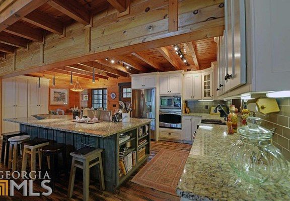 REMARKABLE CUSTOM LAKE BLUE RIDGE ESTATE! Never listed before! This 5 bed + bonus loft, 4.5 bath, classically designed lake home on 1 acre lot boasts EXTREME privacy bordering USFS and roughly 180 feet of rare, deep water lake frontage. Interior features beautiful reclaimed hickory floors, vaulted ceilings w/ exposed beams, wall of windows overlooking the lake w/ stone fireplace. Spacious custom kitchen w/ stainless steel appliances & granite counter tops. Master suites on main floor & upstairs! Full finished terrace level w/ additional living room & 3 large bedrooms. Huge screened in outdoor entertaining area on main level w/ full wet bar, outdoor fireplace and tons of deck space. This cabin is a must see & has more character than you could imagine!