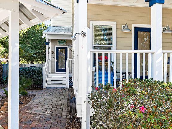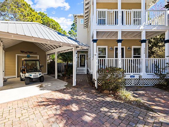 A one of a kind meticulously maintained property on 30-A with a large, fenced, beautifully landscaped yard that is tucked away in the corner of this gated community, Old Florida Village. Offering both privacy and convenience to multiple beach access points, shopping and restaurants. This beach retreat offers proximity to not one but three public beach accesses within half a mile, this spacious abode offers the quintessential coastal lifestyle. Set upon the largest lot within Old Florida Village, privacy is paramount creating an oasis of tranquility with a fenced in backyard with mature trees, landscaping and green space. Distinguished by its rare covered carport, additional parking and golf cart parking garage and pad, this cottage stands out among its peers. Also offered fully furnished. Step outside onto the expansive paver stone patio, perfect for installing a hot tub and hosting al fresco gatherings amidst serene outdoor living spaces. The meticulously landscaped yard enhances the allure, ensuring the utmost enjoyment of the outdoors.Inside, discover updated cabinetry and upgraded porcelain tile "wood" like flooring throughout, along with renovated bathrooms and vanities, elevating both style and functionality. Ample closets cater to storage needs while the oversized tower room offers versatility as a media center, bedroom, game room, office, or any other pursuit your heart desires. Guest bedrooms boast their own covered porches, inviting moments of relaxation and contemplation. Whether you seek a primary residence or a vacation getaway, this home embodies the essence of coastal living with its blend of comfort, convenience, and charm. Welcome to your slice of paradise on 30-A.