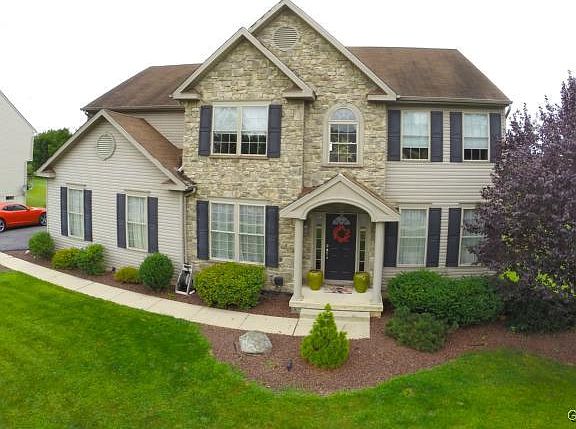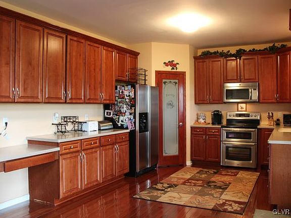 Elegance and family living meet here. Walking in will take your breath away but the tour will make you want to live here. Located minutes from 476, I-78/22, Rt 309 - NY/NJ/PA commuting a breeze. Perfect for entertaining inside and out, custom window treatments, large great room dining/kitchen area, gas fireplace, daylight wall, SS appliances. 4 bedrooms, Office, 3.5 bath beauty, Master bath soaking tub, walk-in closet, built-in entertainment unit, convenient 2nd floor laundry fully finished basement home theater w/built-in surround sound. Sonos speaker system (throughout home), granite top bar & booth seating, full bathroom, game room w/inlaid carpet and Pergo flooring. Walk out onto bi-level paver patio with 2nd story mahogany T&G wrap around covered deck with kitchen, side yard, and backyard staircase entry. Move in and Live in- ready for your family!