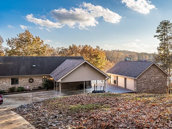 Beautiful all brick home nestled in woods on Watts Bar Lake. Situated on 189 ft of water frontage w/ gorgeous view of lake. Has 2 boat/2 jet ski covered slip-recently re-stained dock. Open floor plan in the living area w/ vaulted ceiling & floor to ceiling windows in GR. Features stone gas F/P, walnut mantle & beautiful poplar walls. Open to kitchen with island (w/ice maker), 5 star gas range, double oven (oversized vent), & vast cabinet storage. Anderson & Pella windows. Striking view of lake from both levels. Walk-out bsmt. Office located off Rec Rm w/ full bath & closet. Workshop (w/wall Hvac & full bath)...attached to 2 car garage. Fully dedicated propane gas generator w/ 250 gal tank plus 500 gal tank for home.
