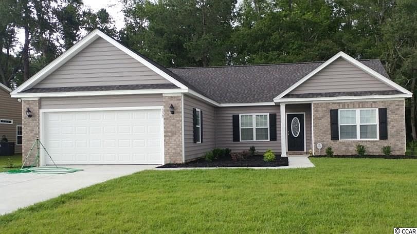 One of Beverly Homes Premier Communities in the Conway area, The Kingston Model has a split bedroom Floor plan with 3 BR, 2 BA on a premium wooded lot. Permastone in wet areas, Carolina Rm, fans with light kits in all bedrooms. Stainless steel appliance package including microwave, dishwasher and Range, custom profiled cabinets with crown moldings, Vaulted ceiling in the Living room and Dining Room, Private Master Suite features tray ceiling, walk in shower, large walk in closet, dual sinks and linen closet. Also includes a Breakfast Nook, Large 21' X 23' garage with garage door opener and remotes. Exterior features include 50 year warranty on roof, brick accents on front of home, full landscaping package including sodded yard with up to 14 Pallets of sod and bedding, and shrubbery. Tanglewood is highly desired neighborhood minutes from downtown Conway and 30 minutes to the beach. Easy access to shopping dining and all amenities. Call or visit our sales office today.