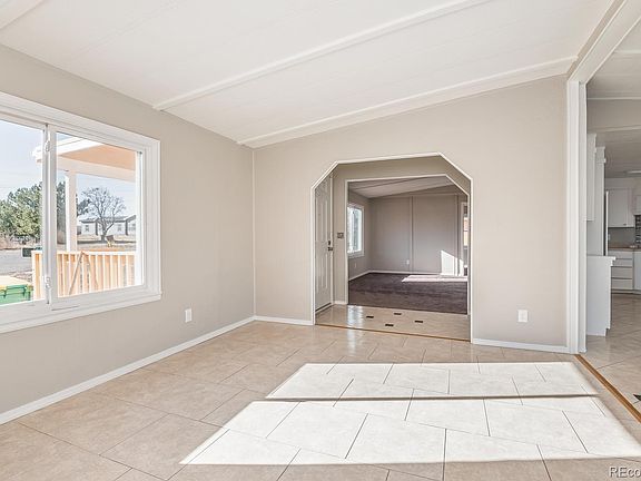 Renovated Manufactured Home in the Lochbuie Lockwood Farms subdivision. This 3-bedroom, 2-bath home is freshly painted, located in a cul-de-sac and sits on a lot that is just over 1 acre. The home has an open floor that opens to the kitchen, dining room and living room areas. The entire interior of the home has been painted and new carpet installed. One of the bedrooms is a master bedroom and the master restroom and walk-in closet have been fully renovated. The roof and water heater are new. There are two storage sheds on the property. There are no HOA fees! Close to retail centers, neighborhood schools and with-in 30 minutes to DIA, Denver or Boulder.