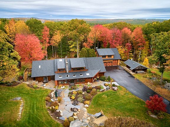 Contemporary home across from Lake Wyola situated on 44 acres of beautiful New England landscape. Take advantage of all this property has to offer with hiking in your own backyard and easy beach access to cool off on those hot summer days. Grand beamed ceilings greet you into open concept living complete with custom woodcarving detail. SS appliances and extra deep counters with island make for a dream kitchen. Sunroom with woodstove, stone floor and hot tub electrical connections. Large, light & bright 1st floor room with access to full bath works as a guest suite, office and more. Master suite with custom pine window seat and convenient kitchenette complete with mini dishwasher. Master bath features stand-up shower, heated towel rack, heated floor, steam sauna, jacuzzi tub. Home features a Generac whole house power system, 2 car attached garage, and huge 4-door detached garage with partially finished loft. This gorgeous property is truly a must see! Check out the 360° tour!