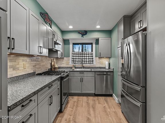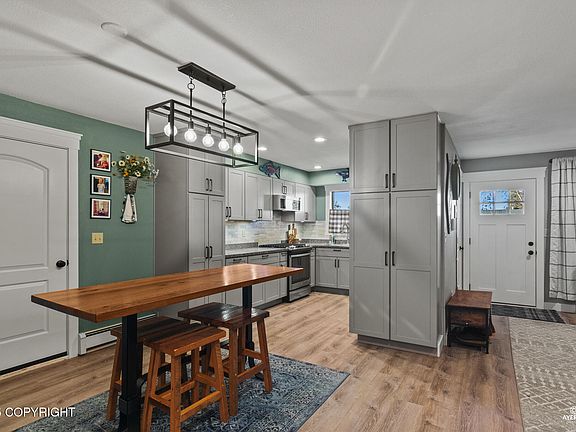 Beautifully remodeled ranch home, perfectly situated in city limits offers both modern comfort & urban convenience. This residence has been thoughtfully updated from the crawl space to the roof & everything in between. Step inside to a fresh & inviting atmosphere, featuring a tasteful color palette throughout. This home seamlessly blends quality craftsmanship with modern updates. A must see!The home's curb appeal is enhanced by new siding & energy-efficient windows added in 2024. A brand-new roof & gutters were installed in 2023 to ensure durability & peace of mind. Step inside to a fresh and updated interior with a new custom kitchen, bathroom, floors, doors, trim, lights, paint, texture & so much more. A stunning custom barnwood wall adds character & warmth, serving as a unique focal point in the open living/dining area.  All located within walking distance to several of Soldotna's amenities. The hospital is a hop, skip and a jump away. Outside enjoy the front deck, plenty of parking and a fenced backyard. Don't miss the opportunity to make this exceptional property your new home.
