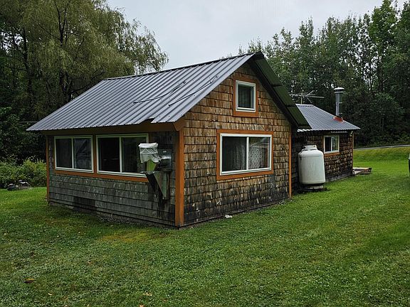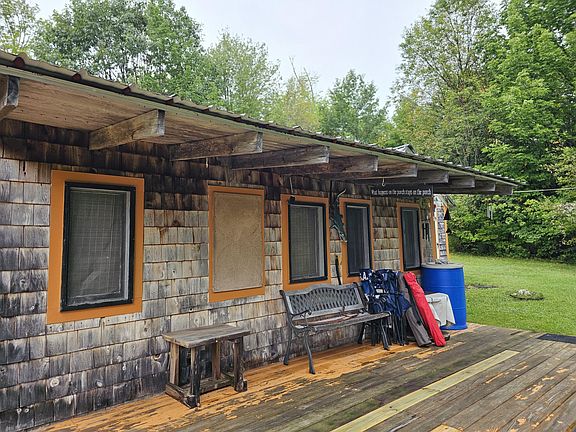 Wanna 'git away'? 'Upta camp'? This cute little off grid camp is the perfect place to unwind! With a two sided deck, beautifully manicured lawn, kitchen with an amazing slate sink, woodstove with new brick work on the wall behind it, a living area and a bedroom that sleeps several (even with its own wood stove!) and a bathrom/storage area this is one you won't want to miss. Most of the windows have been updated and there is a new metal roof. There is a gas range and gas lights, a battery operated fridge and even a shower and toilet. Property comes fully furnished! You just need your tooth brush! Call today for your showing