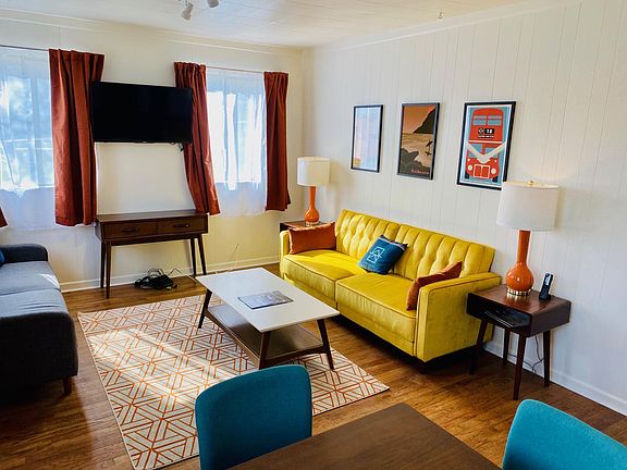 The A-Lodge in downtown Lyons is offering monthly rentals for the winter on this beautifully redone, fully furnished two bedroom casita. The master bedroom has a King Zoma mattress with an electric fire place. The guest bedroom has a queen zoma mattress. Heating and cooling is provided by mini split units in each bedroom as well as a gas furnace in the living room. The kitchen has everything you need for a gourmet meal and the living room has two sofas, a four seat dinner table and DirecTV. This unit is fully furnished, tastefully remodeled with paid utilities. Rent is month to month and available until the beginning of May, 2024. Month to month lease. All utilities included. No smoking inside. Up to two dog's allowed.
