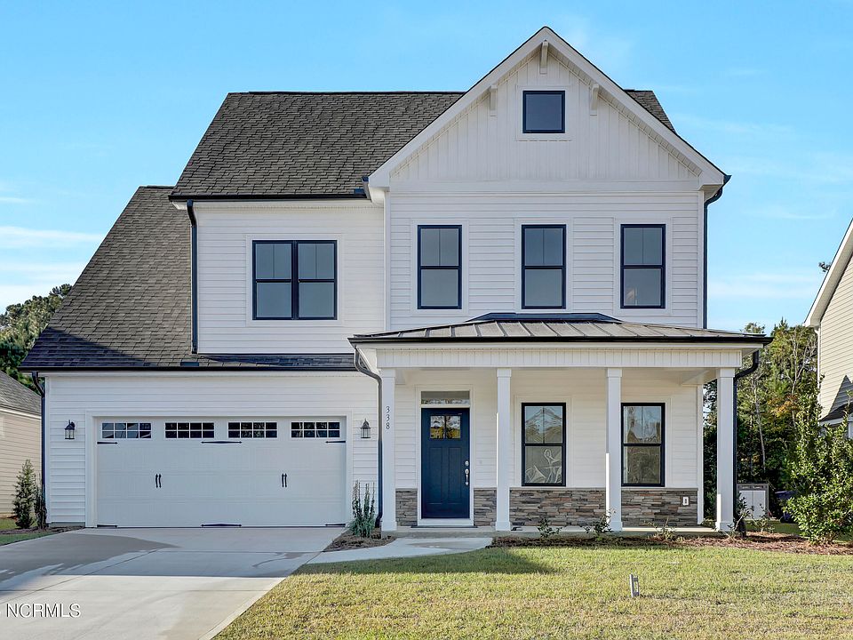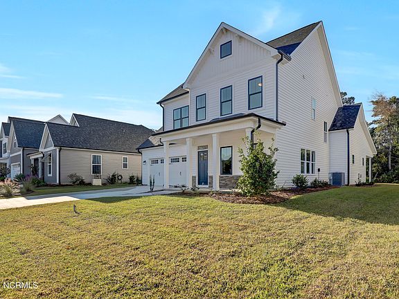This brand new Danbury, from Hardison Building is nearing completion and ready for you to call home! This stunning two-story residence boasts an impressive 2,800+ square feet of meticulously crafted space, featuring four bedrooms and three and a half bathrooms. Step inside, and you'll be captivated by the grandeur of this home. The formal dining room exudes elegance with a tray ceiling and wainscoting, creating the perfect ambiance for intimate gatherings. The heart of the home is the open-concept kitchen and living area that flows seamlessly to the the expansive covered porch and patio. The great room is a true focal point, boasting a cozy fireplace wrapped in shiplap and flanked by custom built-ins. The kitchen, with a large island at its heart, is ideal for socializing while preparing meals or entertaining. It showcases stainless steel appliances, including a natural gas range, tile backsplash, and quartz countertops. The owner's suite is a sanctuary of luxury, boasting a vaulted ceiling with shiplap accent wall and a spa-like bath with walk-in tile shower and double vanity. Be sure not to miss the expansive walk-in closet to accommodate even the most extensive wardrobes. Added convenience awaits on the first floor with a well-appointed laundry room and an inviting eat-in area bathed in natural light. Venture to the second floor, where three additional bedrooms await, along with two full bathrooms and a versatile loft space that adapts to your lifestyle needs. This home boasts an array of desirable features that will elevate your living experience. Revel in the beauty of wide plank laminate flooring that graces the entire first-floor living area and wood stair treads that lead you to the 2nd floor. Plus, enjoy the efficiency of a natural gas hot water heater. The Sanctuary at Forest Sound is strategically located in the heart of Hampstead, offering easy access to a host of amenities and a mere 15-minute drive to Wilmington or Topsail Island.