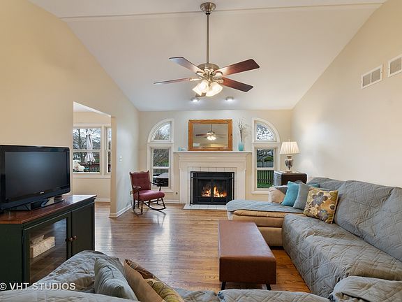 Welcome home! This beautiful 4 bedroom ranch in Oakhurst subdivision is fresh and ready for new owners! The spacious master suite has a walk-in closet, spa bath w/separate shower and dual sinks. Cozy up by the fireplace in the vaulted ceiling living room with freshly refinished hardwoods. A light and bright sunroom off the dining room has access to the large deck and patio. The yard is fully fenced and professionally landscaped - excellent yard for entertaining! The basement provides an additional living space, bedroom, laundry, and abundant storage. So many lovely spaces to enjoy in this home! So much new as well: Siding (2013), Roof,(2013) Windows(2013), High efficiency furnace & A/C (2009). Acclaimed district 204 schools - close to parks, schools and amenities. This one is a gem - come see it today!