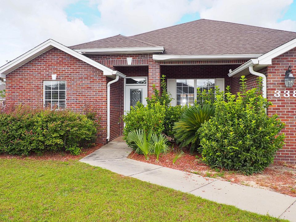 Beautiful must see brick home in the quiet Forest Walk Subdivision. Newer well maintained home is close to Tyndall AFB, schools, parks, ball fields, shopping, and water activities. Lovely landscaped yard with covered front porch is a nice hangout on those cool evenings. Plenty of natural light throughout the house from the energy efficient insulated windows with treatments. You'll love the privacy and separation of the split bedroom floor plan. The master bedroom with high tray ceiling and plenty of space is just off the kitchen and breakfast room. The master bathroom is like a spa with a separate Jacuzzi tub and shower with a large walk in closet. The additional bedrooms are spacious with large closets and ceiling fans. If you need an office the first bedroom would be perfect with it's