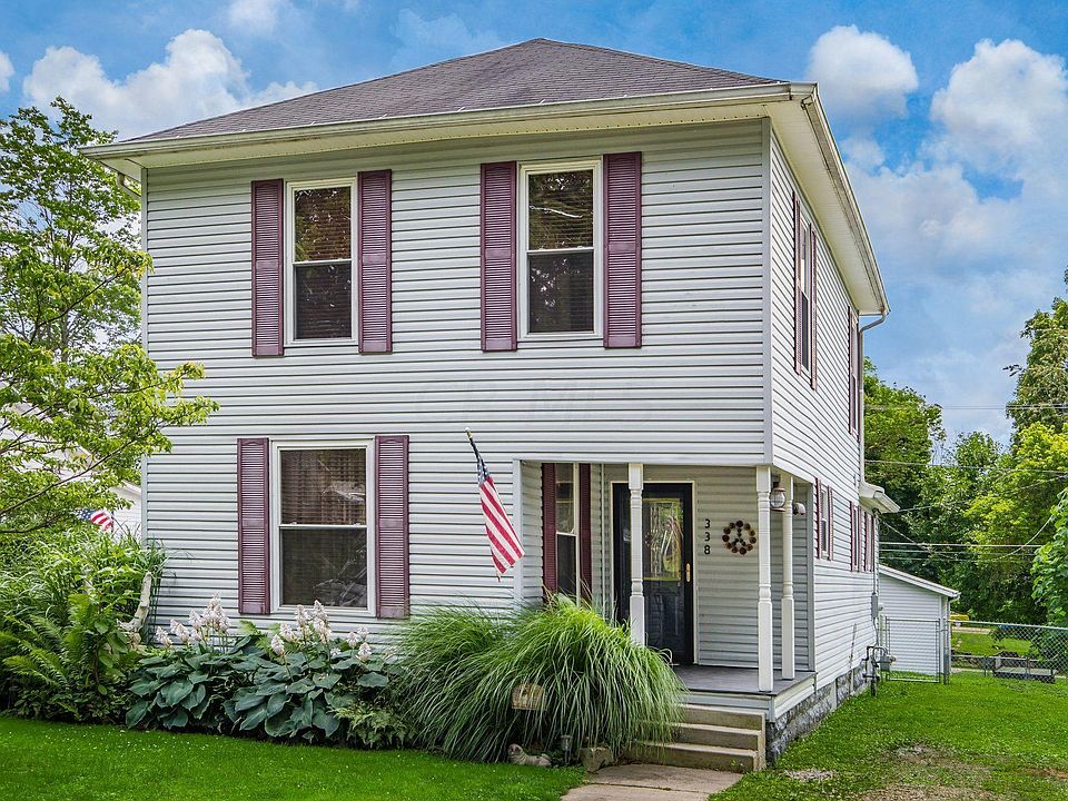 This historic home, in the heart of the village, has been lovingly renovated and features a fabulous open concept floorplan! The great room features room for both living and dining spaces with floor to ceiling windows on three walls. The great room opens to the kitchen which features new tile floors, plenty of counter space & is adjacent to the butler's pantry/main level laundry with glass door to the deck. The deck overlooks the fenced backyard & 2-car garage. The main floor also features a full bath w/tub, expansive foyer, & a gorgeous, original staircase to the second floor. Upstairs features a beautifully remodeled full bath w/shower w/tile surround, new floor, lighting, & plumbing fixtures. Also, upstairs are three sun-filled bedrooms. Don't miss all this home has to offer!