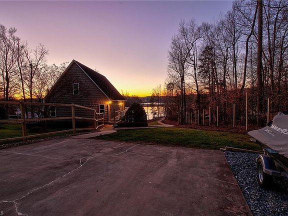 STUNNING SUNSET Views from this Lake Front home on High Rock Lake. Boat, Fish, paddle board, kayak, swim from your private dock! Massive wall of windows allow SPECTACULAR scenery! Soaring ceilings in the living area allow streaming light and views that give you a sense of bringing the outside in! Open floor plan makes entertaining easy ~ Large dining area + kitchen all in one space! Dining area can easily accommodate a workspace overlooking the lake! The kitchen boasts Granite counters, lots of bar seating, & SS appliances ALL while Lake Gazing! Two bedrooms on the main level. Spacious upstairs master w /private bath. Approx $50,000 in recent upgrades since July 2020. Fence surrounding entire property currently in progress -completion date mid Jan '21. Private walkway to your own private gazebo, fire pit area, and pier! Deep water, boat slip space! See doo ramps negotiable. Plenty of future expansion in the Full unfin framed basement ~1300 sq ft! MUST SEE! LIVE WHERE YOU PLAY!